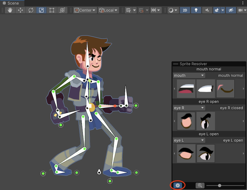 Sprite Swap overlay allows you to swap individual Sprites directly from the Scene View. The overlay supports swapping Sprites from multiple resolvers. This might be useful when working on complex characters.
