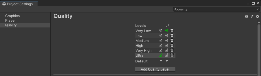1. Go to **Edit > Project Settings** and select the [Quality](https://docs.unity3d.com/Manual/class-QualitySettings.html) category.