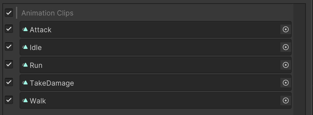 Select the Animation Clips button to open the Animation Clips tab.
