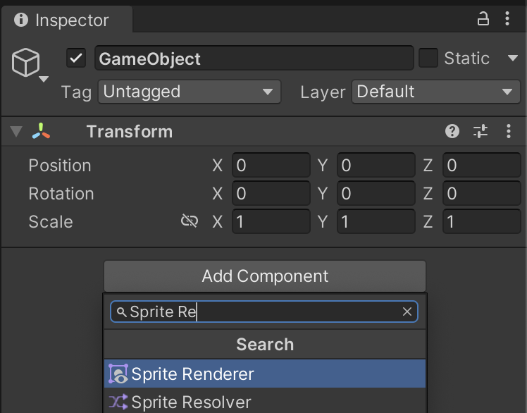Create an empty GameObject (menu: Right-click on the Hierarchy window > Create Empty). Select it and then add the Sprite Renderer component.
