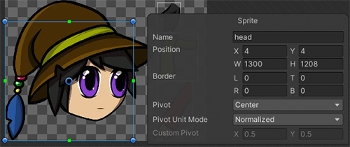 Example 2: Drag the corners of the SpriteRect to modify its dimensions and location, or enter the coordinates and dimensions in the Sprite panel.