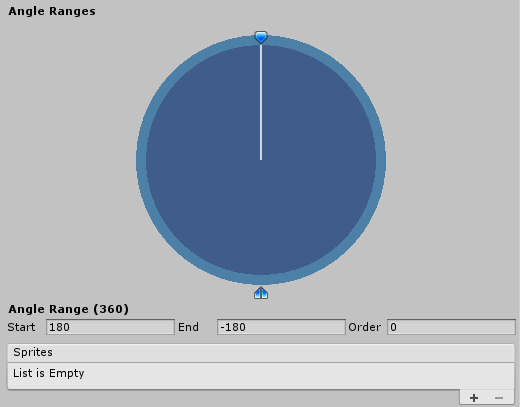 After creating the Angle Ranges, the next step is to assign Sprites to those ranges. The Sprites list is found beneath the Angle Ranges tool. It lists all the Sprites assigned to the selected range.