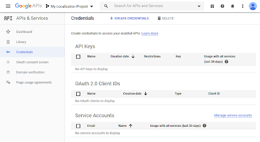 Visit Google API Console and select the Credentials section under APIs & Services. This opens Google APIs: Credentials