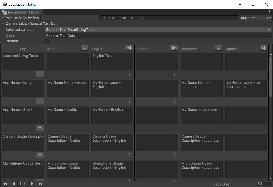 Use the Localization Tables Window to create and edit Localization Table Collections such as String Tables Collections and Asset Table Collections.