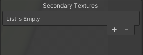 In the Secondary Textures editor, select a Sprite to add Secondary Textures to. With a Sprite selected, the Secondary Textures panel appears at the bottom right of the editor window. The panel displays the list of Secondary Textures currently assigned to the selected Sprite. To add a new Secondary Texture to the Sprite, select + at the bottom right of the list.