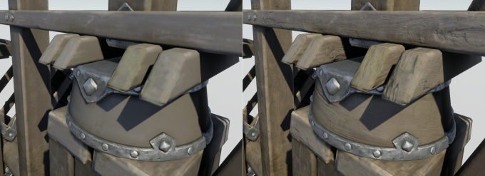Left: rendered object only with the Base Map. Right: rendered object with the Detail Map.