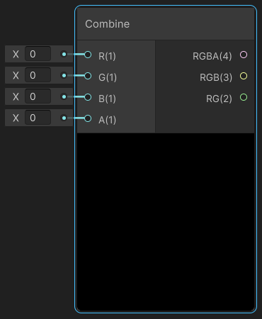 | Creates new vectors from the four inputs R, G, B and A. | Flips the individual channels of input In selected by the Node's parameters. |
