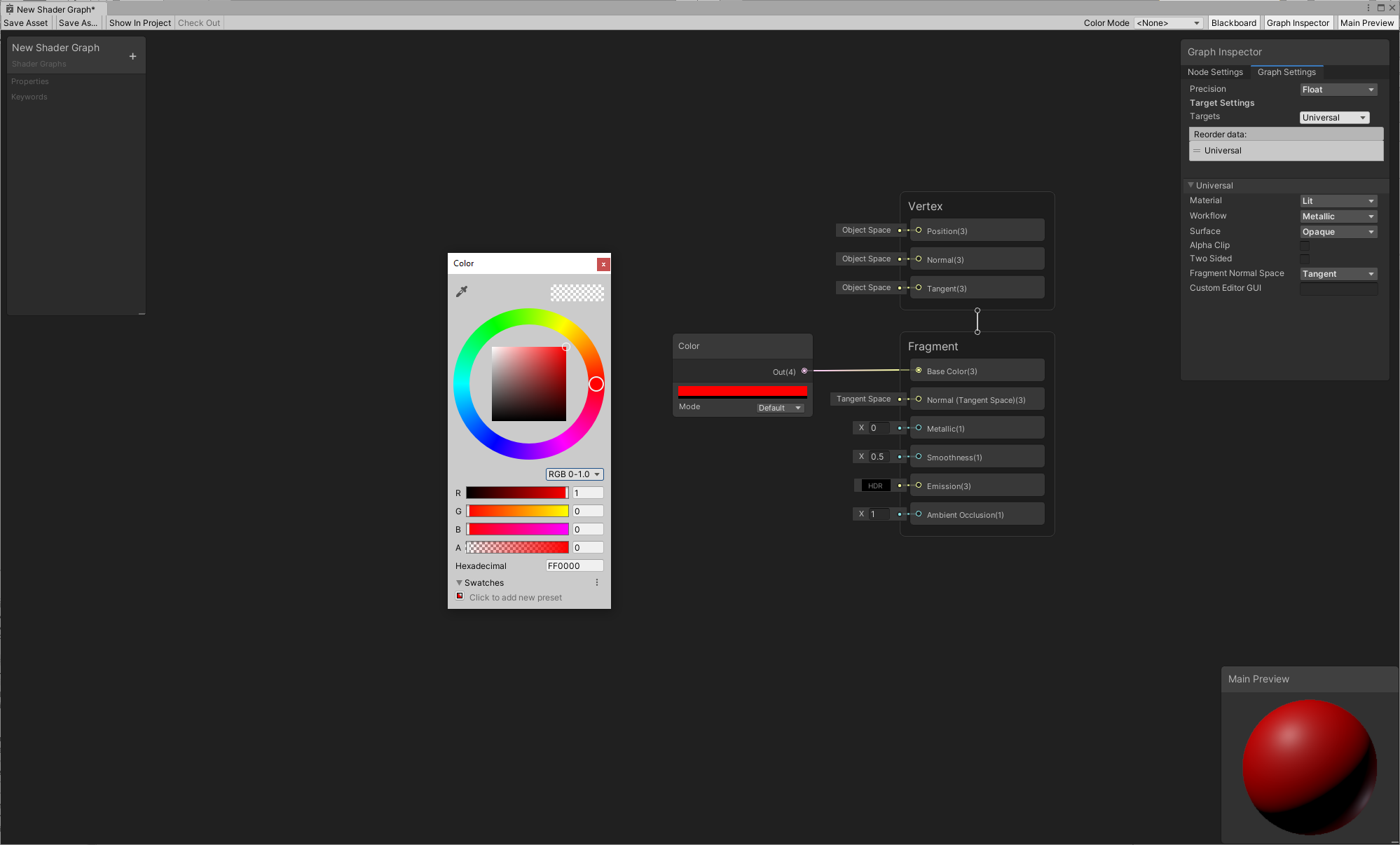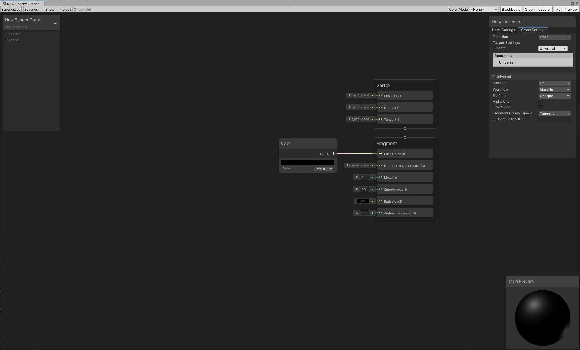 Before you begin, make sure that your project is set up properly, and the graphs are loading correctly. See Getting started with Shader Graph for more information.