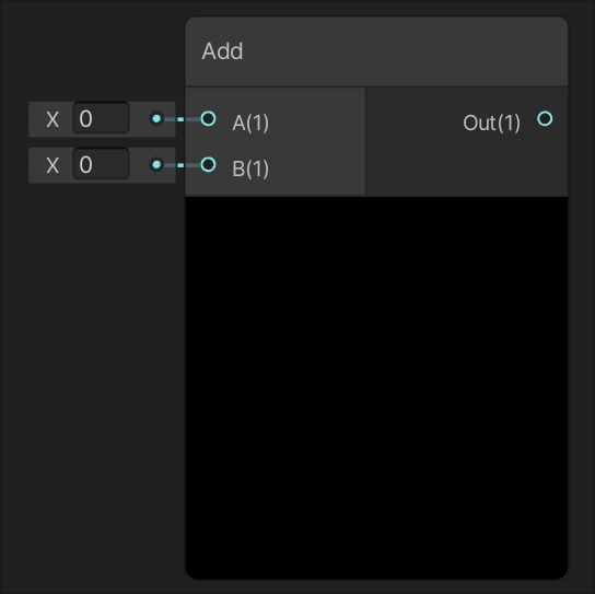 | Returns the sum of the two input values. | Returns the result of input A divided by input B. |