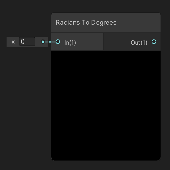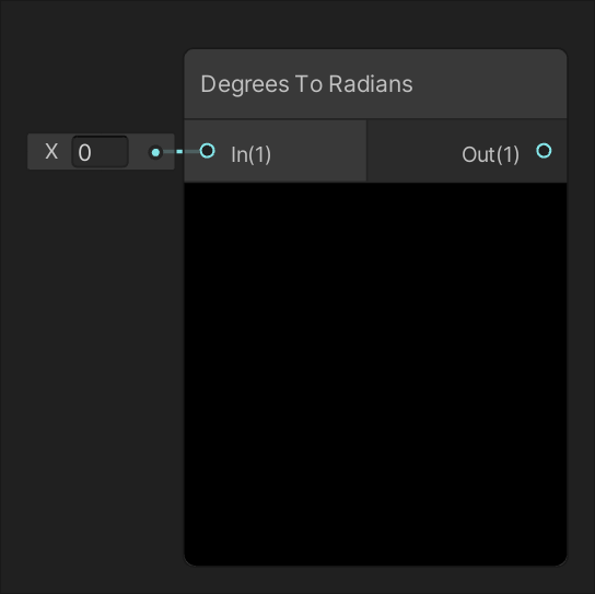 | Returns the cosine of the value of input In. | Returns the value of input In converted from degrees to radians. |
