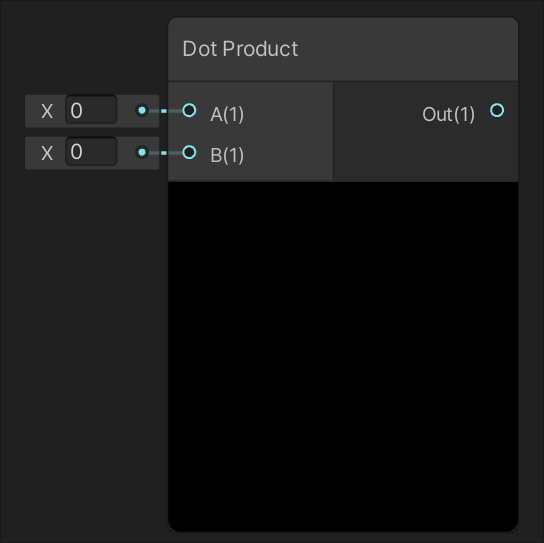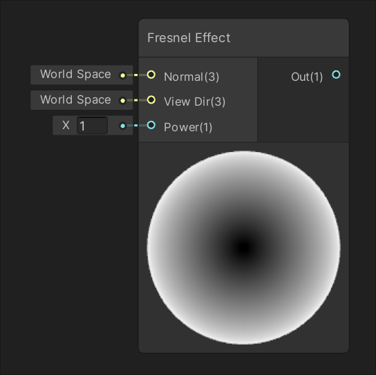 | Returns the dot product, or scalar product, of the values of the inputs A and B. | Fresnel Effect is the effect of differing reflectance on a surface depending on viewing angle, where as you approach the grazing angle more light is reflected. |