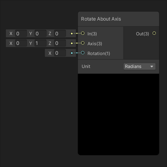 | Returns the result of the projection of the value of input A onto the plane orthogonal, or perpendicular, to the value of input B. | Rotates the input vector In around the axis Axis by the value of Rotation. |