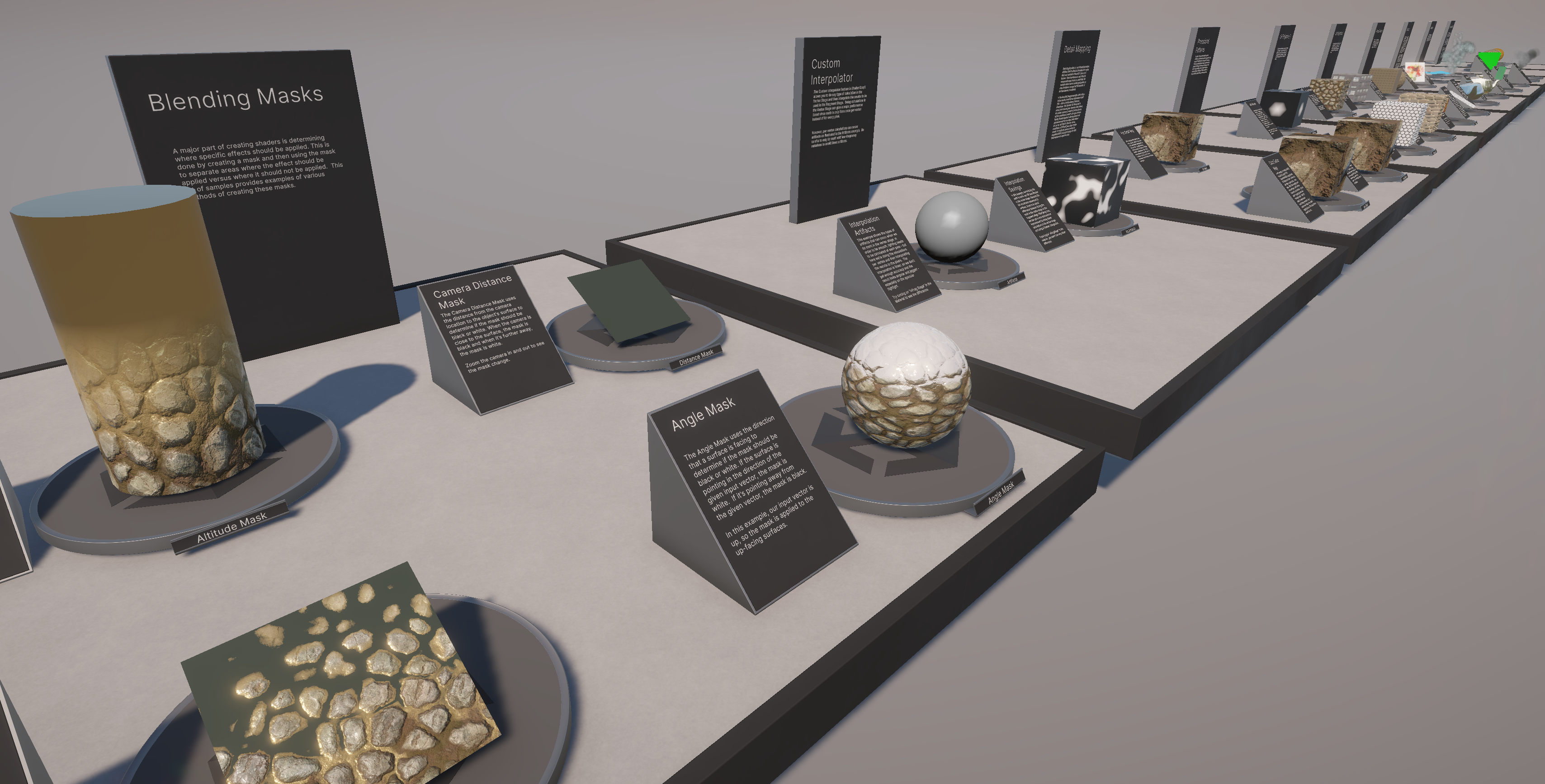 | This is a collection of over 30 Shader Graph files. Each file demonstrates a specific shader technique such as angle blending, triplanar projection, parallax mapping, and custom lighting. While you won’t use these shaders directly in your project, you can use them to quickly learn and understand the various techniques, and recreate them into your own work. Each file contains notes that describe what the shader is doing, and most of the shaders are set up with the core functionality contained in a subgraph that’s easy to copy and paste directly into your own shader. The sample also has extensive documentation describing each of the samples to help you learn. |