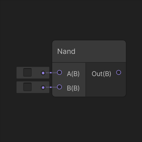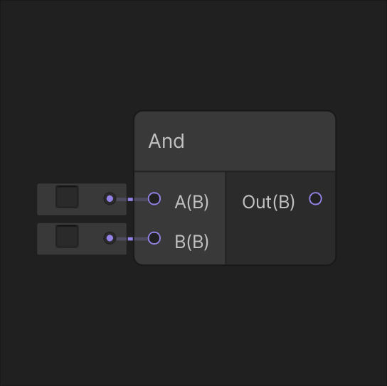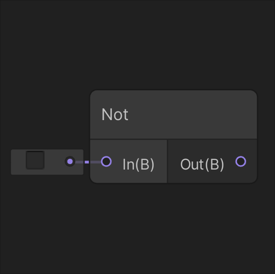 Returns the opposite of input In. If In is true, the output is false. Otherwise, it returns true. Returns true if either input A or input B is true.