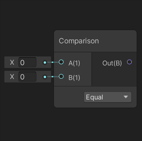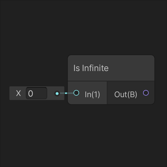 Compares the two input values A and B based on the condition selected on the dropdown. Returns true if any of the components of the input In is an infinite value.