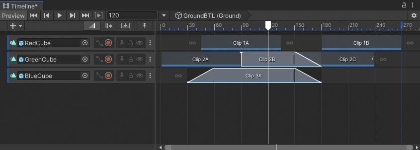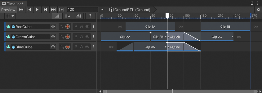 If a split clip is part of a blend, or if the split is performed within a blend, Timeline copies the blend settings to the split clips.