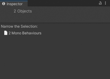 If your selection does not have common properties, the Inspector window prompts you to narrow the selection. For example, if you select an Animation track and an Audio clip in the Timeline window, you are prompted to narrow the selection: