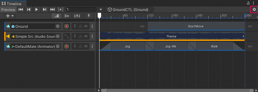Select to open the Preferences window and access the Timeline Preferences. The Timeline Preferences are settings that apply to the Timeline window regardless of the selected Timeline asset or Timeline instance. Consult Timeline Preferences for more information.