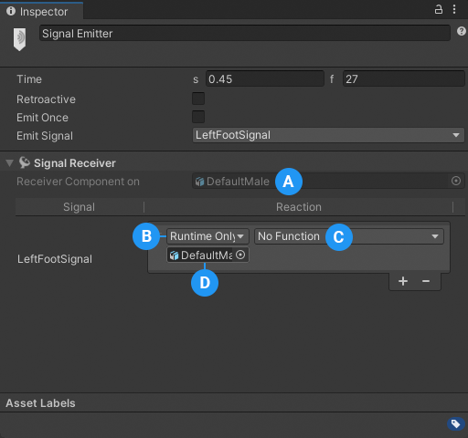 A Signal Asset defines the relationship between the Timeline Marker and the Signal Receiver. You can reuse a Signal Asset multiple times for many different Timeline Markers.