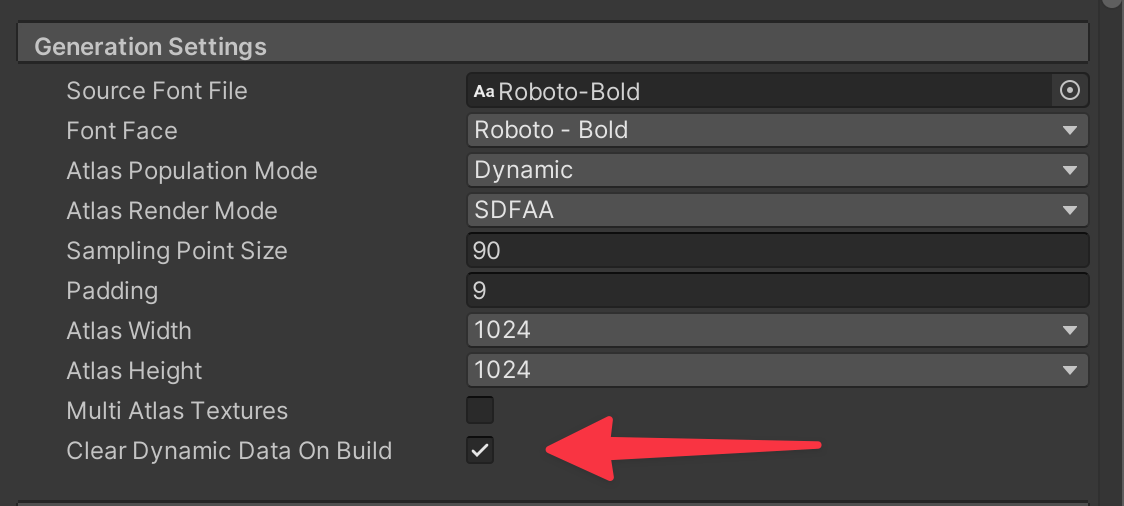 - In the FontAsset inspector, navigate to the Generation Settings section.