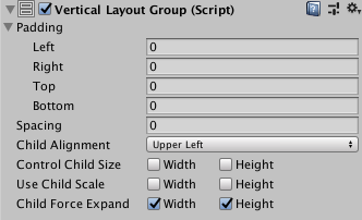 Control Child Size Whether the Layout Group controls the width and height of its child layout elements.